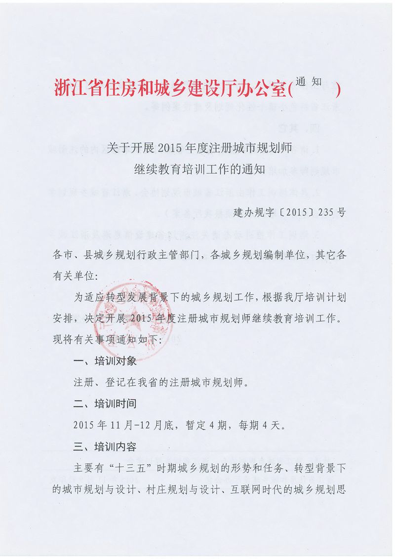 关于开展2015年度注册城市规划师继续教育培训工作的通知