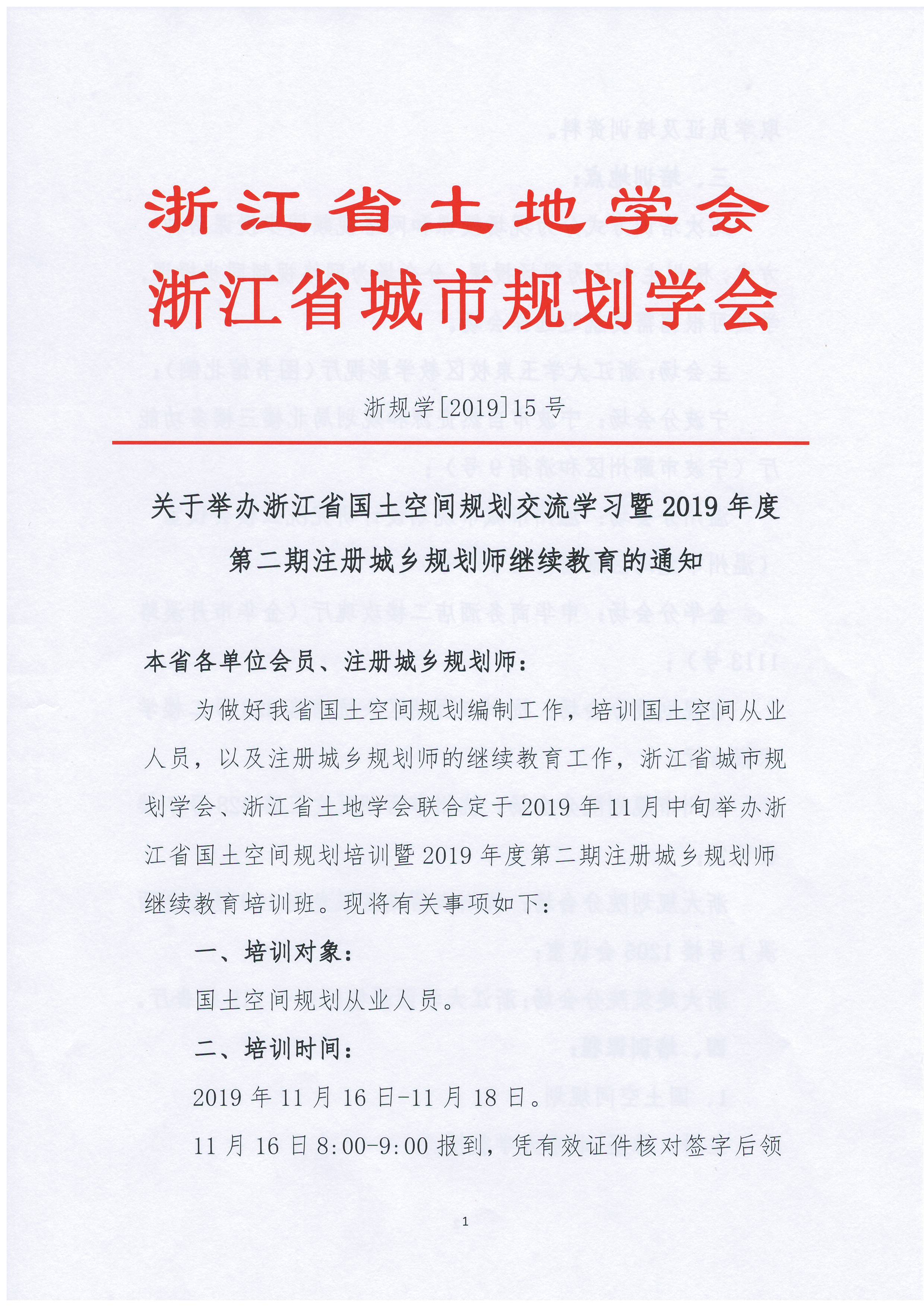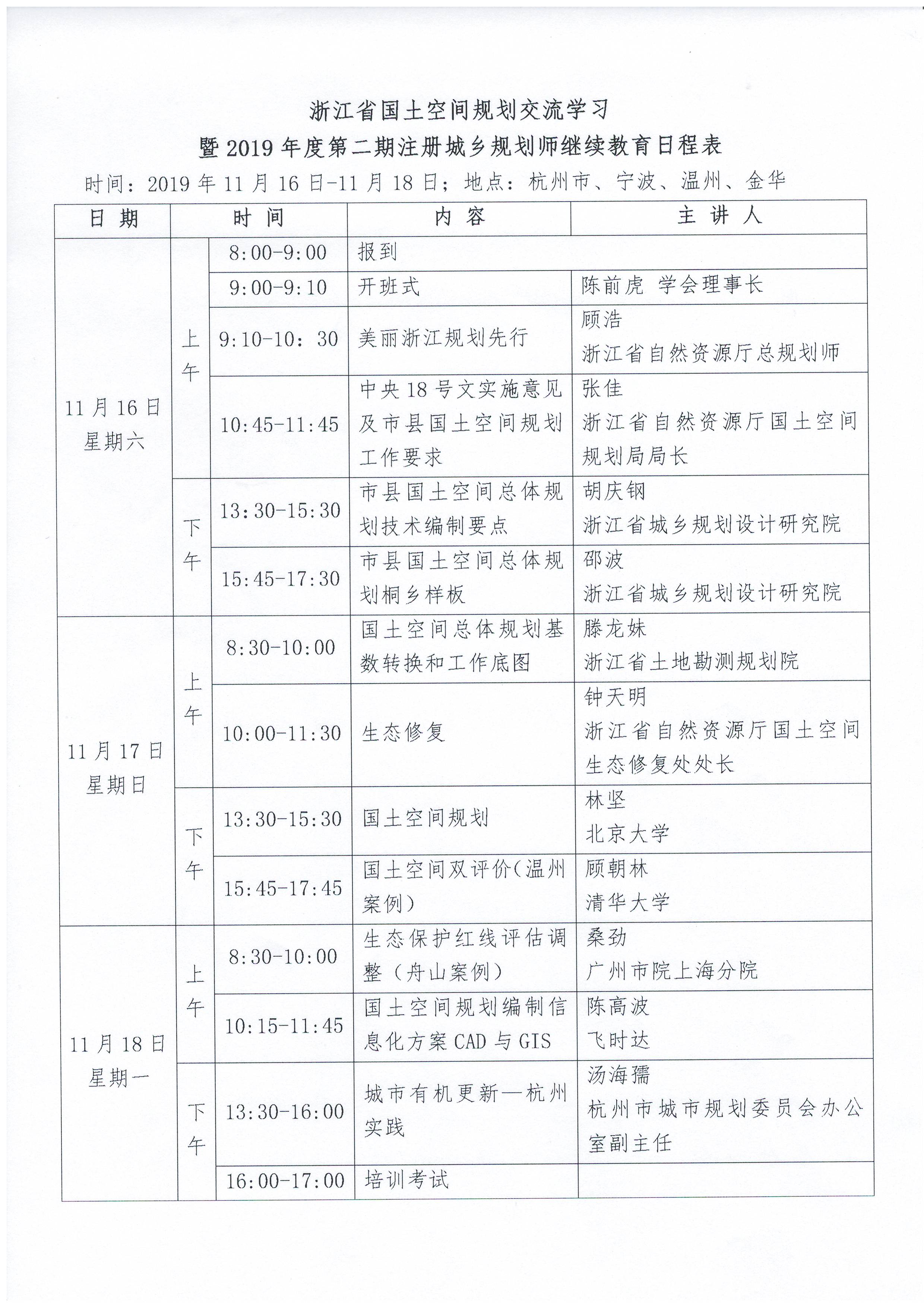 关于举办浙江省国土空间规划交流学习暨2019年度第二期注册城乡规划师继续教育的通知