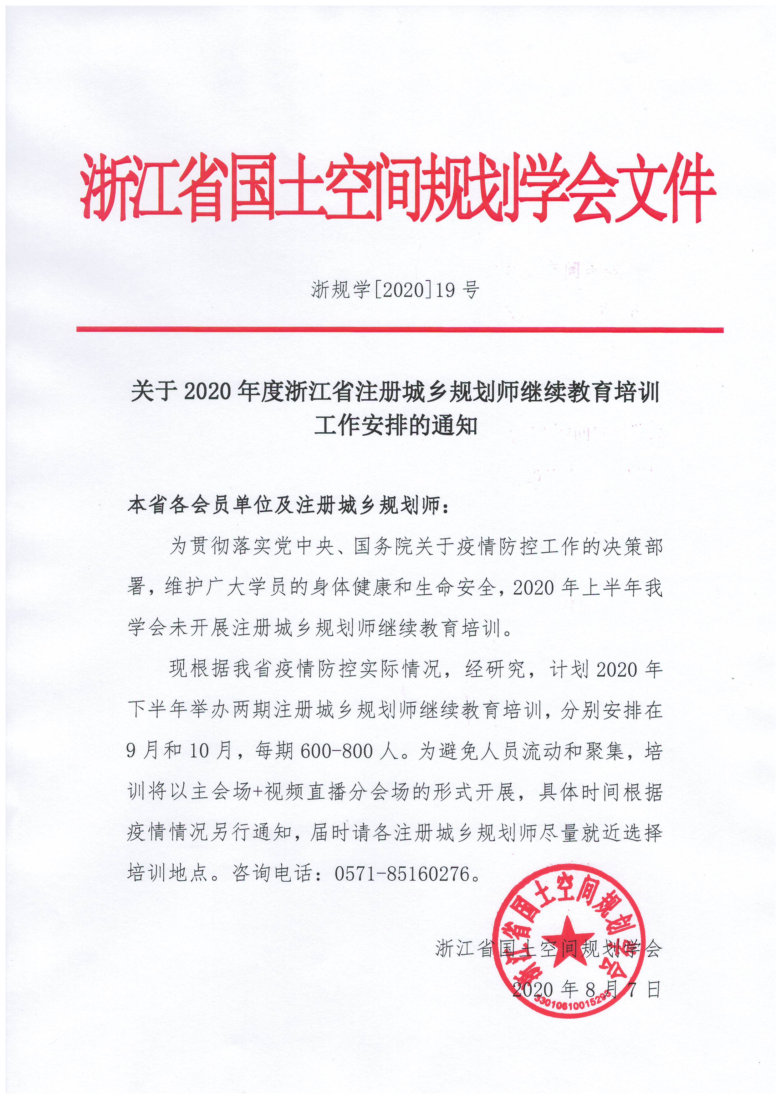 关于2020年度浙江省注册城乡规划师继续教育培训工作安排的通知